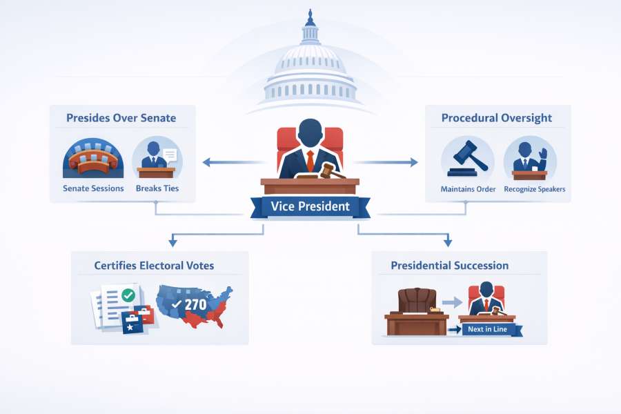 Even though it is limited, the Vice President’s role in the Senate can influence major outcomes when margins are tight. In a closely divided chamber, a single tie-breaking vote can affect legislation, confirmations, and the balance of power.
