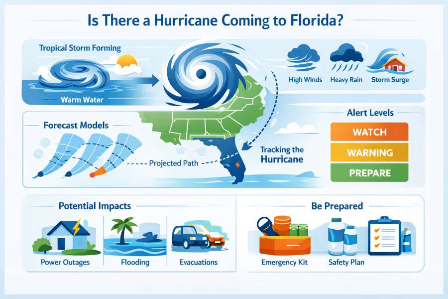 As of today, there is no hurricane headed toward Florida and no active tropical cyclones in the Atlantic, Caribbean, or Gulf of Mexico that pose a threat to the state at this time. Meteorological agencies are not forecasting any developing systems that could become a hurricane in the near future.